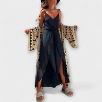 Der überlappende V-Ausschnitt setzt dein Dekolleté gekonnt in Szene und verlängert optisch den Hals, während verstellbare Spaghettiträger für einen passgenauen Sitz sorgen. Der elastische Bund bietet ganztägigen Komfort und eine entspannte Silhouette.