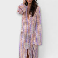 Genießen Sie den entspannten Luxus dieses fließenden Maxikleids – ein unverzichtbares Must-Have für elegante Momente unterwegs. Gefertigt aus leichtem, atmungsaktivem Material, überzeugt es mit einer lockeren Passform, die Komfort und zeitlose Raffinesse harmonisch verbindet. Der tiefe V-Ausschnitt und die langen Ärmel schaffen eine feminine Silhouette, während die knöchellange Länge für einen stilvollen Auftritt sorgt – ob am Strand oder beim Abendessen.