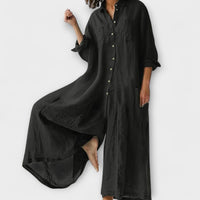 Erlebe unvergleichlichen Komfort mit dem Theodora™ Lockeren Jumpsuit, der für diejenigen entworfen wurde, die sowohl Stil als auch Leichtigkeit schätzen. Dieses vielseitige Teil verfügt über eine fließende Silhouette, die mühelos von Tag zu Nacht übergeht und dafür sorgt, dass du zu jedem Anlass fantastisch aussiehst und dich wohlfühlst.
