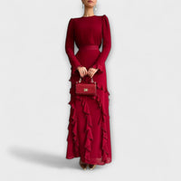 Almut - Slim Fit Langkleid mit dreidimensionalen Rüschen