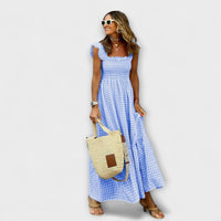 Milena - Maxikleid mit gerafften Karo-Rüschensäumen