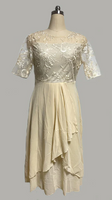 Unser besonderes Hochzeitsgastkleid mit halblanger Silhouette, wunderschön besticktem Oberteil und kurzen Ärmeln ist die perfekte Wahl für jede festliche Gelegenheit. Erhältlich in den Farben Blau, Grün, Lila, Grau, Dunkelblau, Rosa und Beige, bietet dieses Kleid sowohl Eleganz als auch Komfort für jedes Event.