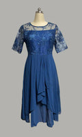 Stilvolles Design: Der halblange Schnitt und das kunstvoll bestickte Oberteil verleihen dem Kleid eine elegante Note, die ideal für festliche Anlässe ist.