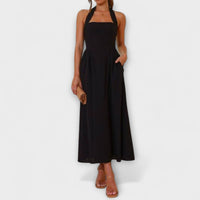 Tatjana - Mid-Length Schwarzes Halterkleid mit Taillendetail