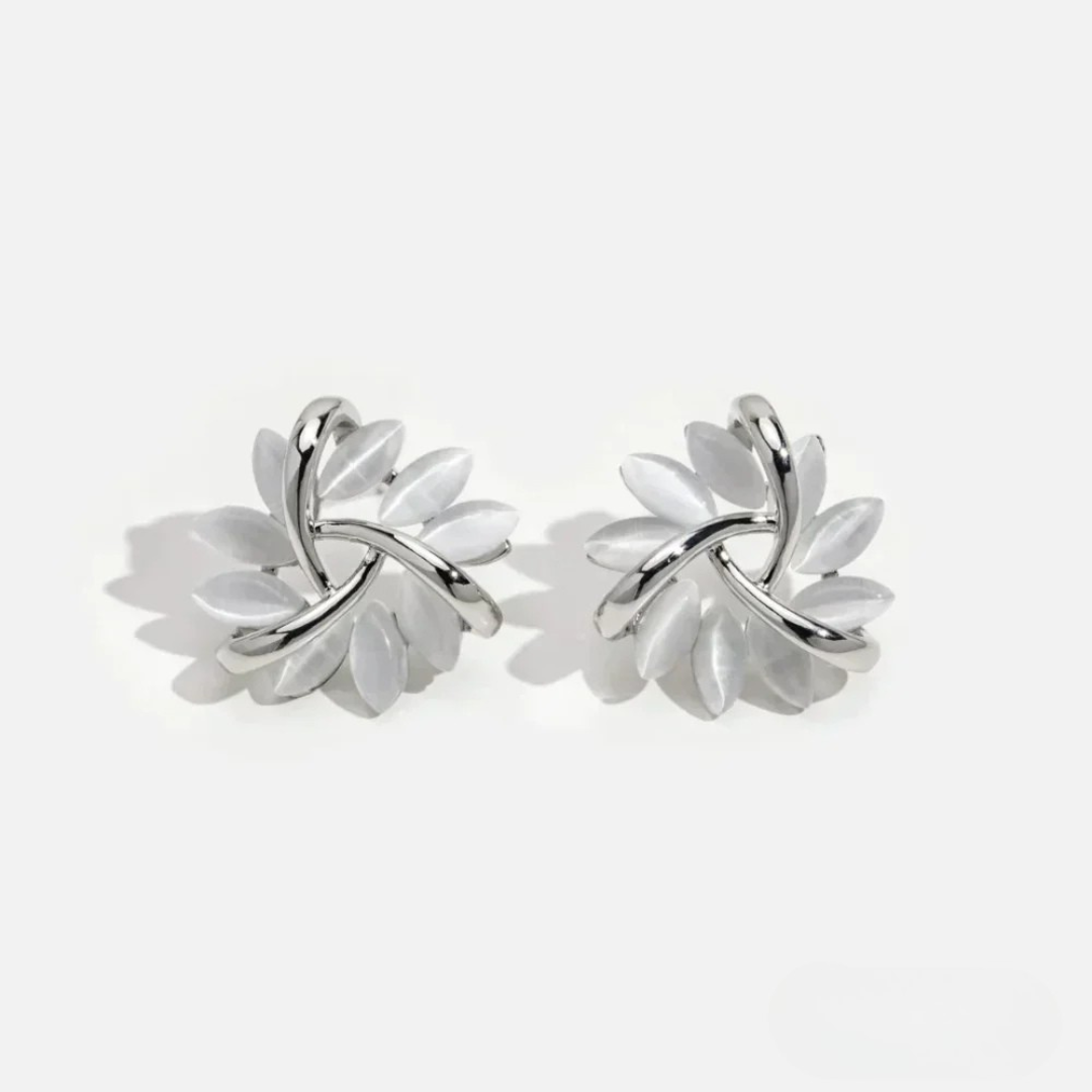 Ilse - Elegante und exquisite Opal-Ohrstecker mit Blütenblatt-Motiv in Gold