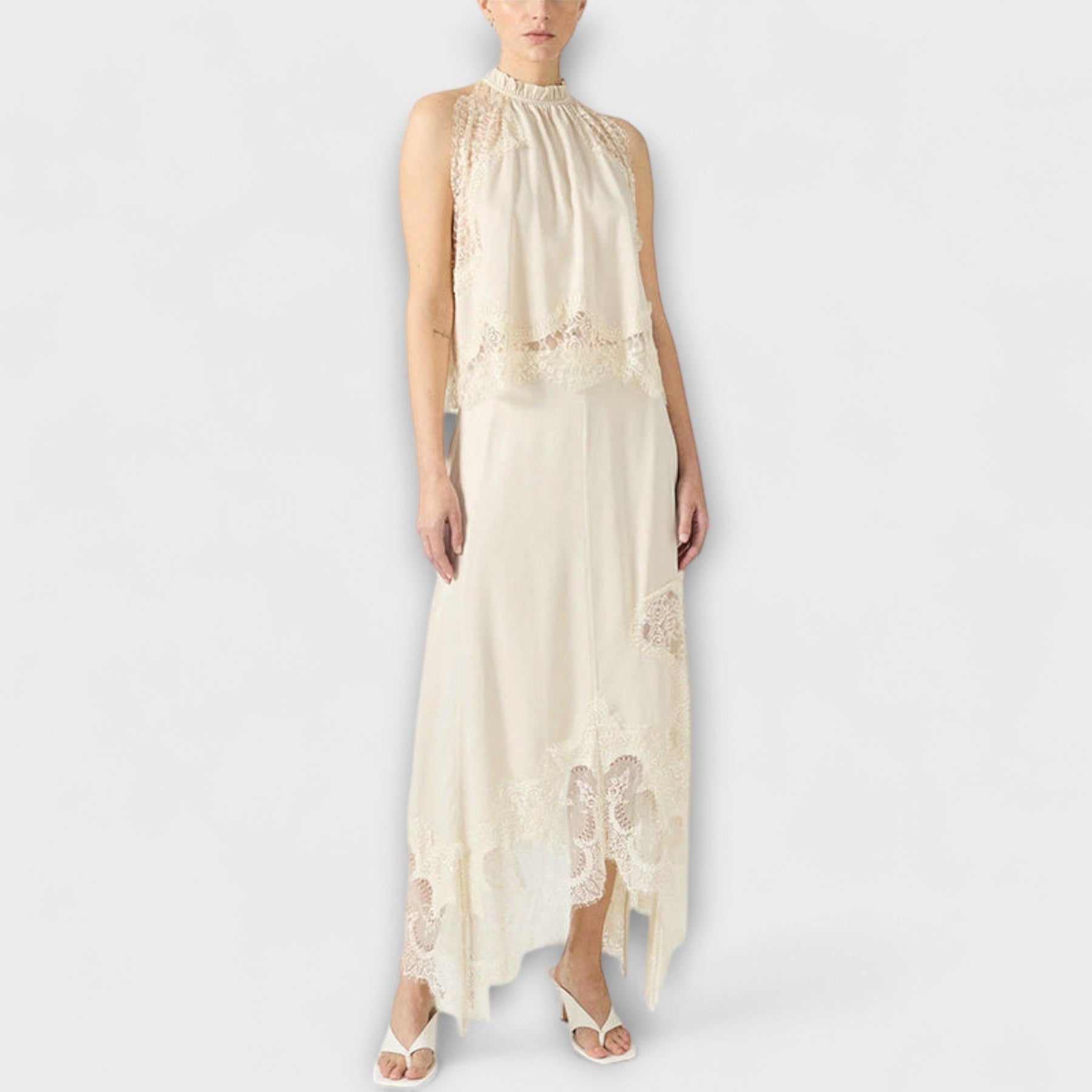 Fredrika – Satin-Set mit Spitzenakzenten und plissiertem Ausschnitt
