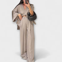 Roswitha – Lässiges V-Ausschnitt-Set mit Hose
