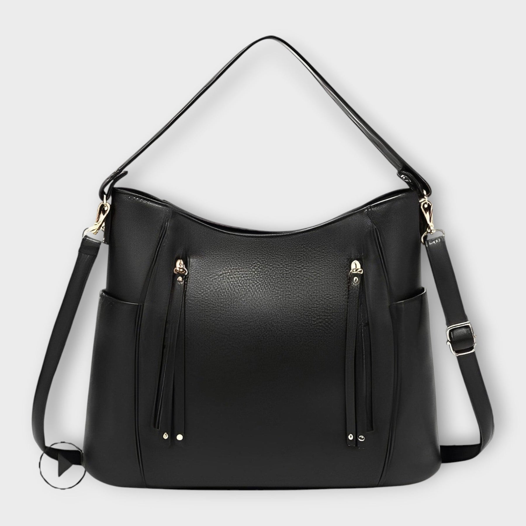 Praktische Funktionalität: Magnetischer Knopfverschluss und verstellbarer Schulterriemen für ganztägigen Komfort.